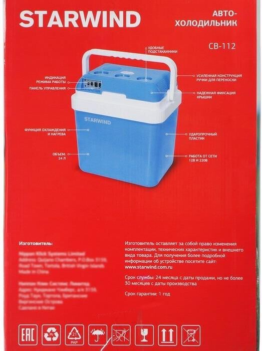 Автомобильный холодильник STARWIND CB-112 24л 48Вт голубой/белый