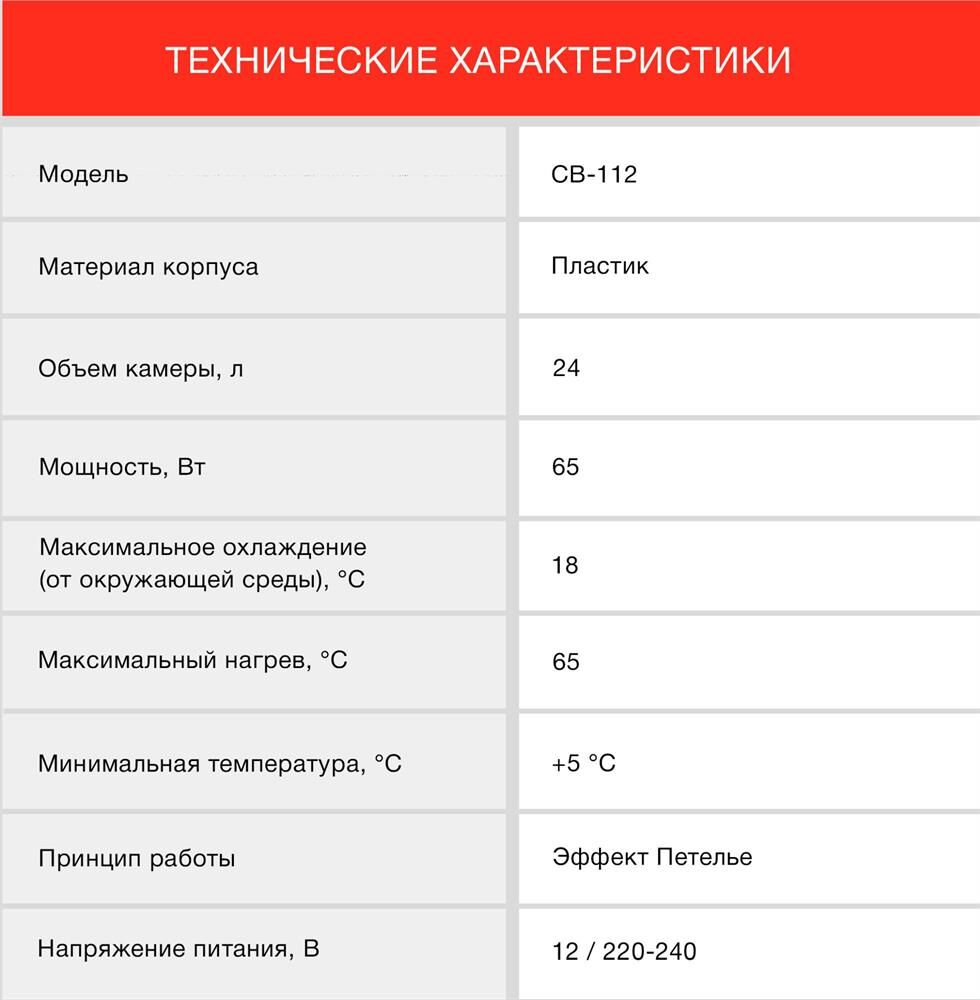 Объем камеры 24 л Потребляемая мощность 48 Вт Охлаждение, до 18 °С температуры окружающей среды Функция нагрев ДА Нагрев, до 65 °С Питание от бортовой сети автомобиля 12В Питание от бытовой электросети 220/240В Устройство для транспортирования ручка для переноски Материал корпуса пластик Цвет голубой и белый Размеры 400 x 435 x 302 мм Вес 4.8 кг