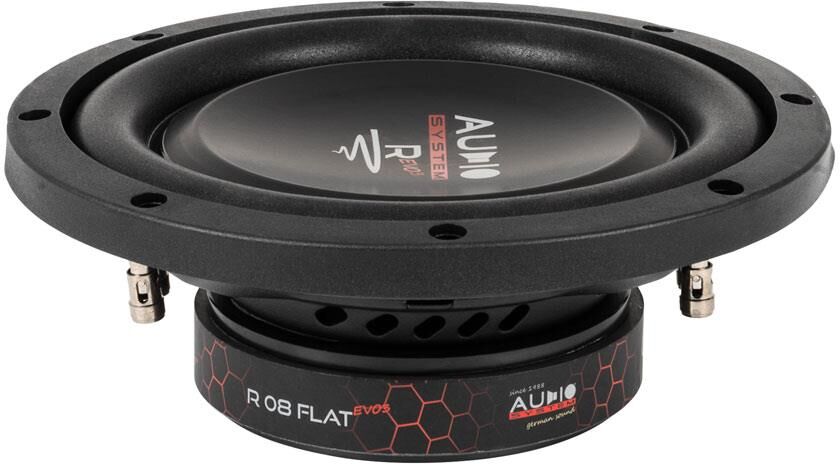 Автосабвуфер AUDIO SYSTEM Сабвуферный динамик R08 FLAT EVO3, R-Series, 8" (20 см), RMS 200 Вт, VC 1,5", 2+2 Ом