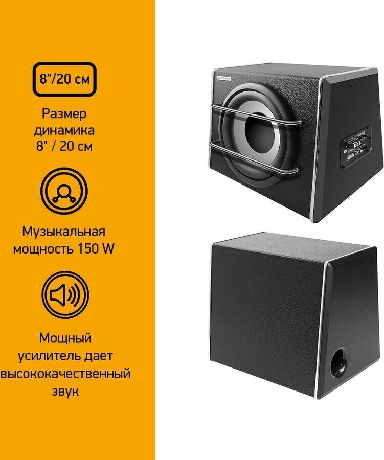Вид сабвуфера активный. Тип корпуса сабвуфера закрытый ящик. Номинальная мощность 150 Вт. Максимальная мощность 150 Вт. Количество НЧ динамиков 1.