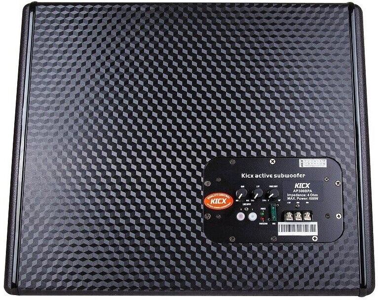 Активный сабвуфер классического типа. Благодаря довольно объёмному ящику, способен играть довольно низко, но при этом не занимает много места. Идеален для однообъёмных автомобилей. Номинальная мощность 300 Ватт, максимальная — до 600 Ватт. Размер, дюйм (мм)- 12 (300) Номинальная мощность, Вт- 300 Максимальная мощность, Вт- 600 Сопротивление / Импеданс, Ом- 4 Диапазон воспроизводимых частот, Гц- 40–500 Габариты корпуса, мм- 450 × 330 × 360 Фазоинвертор- да Входы RCA- да Входы HiLevel- нет Дистанционный регулятор- нет ФНЧ / Крутизна спада- 50–250 Фазавращатель- 0–180 Предохранитель- 30 Резонансная частота, Гц- 40 Материал диффузора- целлюлоза Размер магнита, мм- 135 × 60 × 20 Вес магнита, г- 40