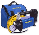 Воздушный компрессор Goodyear GY-80L 80 л/мин, двухпоршневой, питание от АКБ, съемный витой шланг, сумка для хранения Устройство отлично справляется с накачиванием колес джипов, внедорожников, минивэнов, микроавтобусов и небольших грузовиков, а также надувных лодок. В комплект входит набор переходников. Производительный компрессор питается от клемм аккумулятора 12В. Он может беспрерывно работать в течение 30 минут, а с колесом R-16 справляется за 2 минуты. Модель GY-80L оснащена съемным витым шлангом, на конце которого расположен коннектор к ниппелю колеса в виде удобной металлической защелки. За счет этого процесс присоединения компрессора становится практически мгновенным и не требует усилий. Двухпоршневой компрессор поставляется в прочной сумке, что позволяет компактно хранить инструмент в багажнике автомобиля. " Вес: 3,8 кг " Длина провода питания: 3 м " Длина витого шланга: 5 " Габариты ДхШхВ: 290х195х220 мм