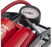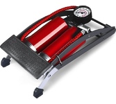 Насос состоит из опорной рамы, педали, поршня со штоком, 2х цилиндров, возвратной пружины, манометра со шлангом и невозвратным клапаном. Максимальное давление: 7 АТМ Общий объём цилиндров: 350 см3 Длина резинового шланга: 50 см Комплектация: насос механический, набор насадок Размеры насоса: 28х13х7 см Вес: 1,25 кг