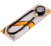 Автомобильный манометр для шин отечественного производителя TOPAUTO максимально возможным давлением 12 атм. ориентирован прежде всего на использование с грузовыми и коммерческими автомобилями, а также автобусами и крупной спецтехникой – для измерения давления в их шинах. Практичный металлический корпус, защитный резиновый чехол, масло-и бензостойкий шланг, компактные размеры. Есть клапан сброса давления. Упаковка - блистер.