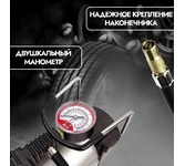 Мощность – 150 Вт. Максимальная сила тока – 15 А. Максимальное давление – до 10 кг/см2 (140PSI/10Bar) Производительность – до 35 л/мин. Шнур питания – 2,7 м. Воздушный шланг – 1м. Тканевая сумка для хранения и переноски Питание от гнезда прикуривателя Комплект насадок-переходников – 3 шт. Встроенный в штекер питания предохранитель Цвет- серебро Напряжение питания — 12В. Состав: металл, пластик