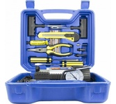 Мощность – 150 Вт. Максимальная сила тока – 15 А. Максимальное давление – до 10 кг/см2 (140PSI/10Bar) Производительность – до 35 л/мин. Шнур питания – 2,7 м. Воздушный шланг – 1 м. Пластиковый кейс для хранения и переноски Питание от гнезда прикуривателя Комплект насадок-переходников – 3 шт. Встроенный в штекер питания предохранитель Набор инструментов: плоскогубцы удлиненные – 1 шт., отвертка плоская – 1 шт., отвертка крестообразная – 1 шт., нож с выдвижным лезвием – 1 шт., спиральный рашпиль – 1 шт., шило- 1 шт., жгуты армированные – 3 шт., клей-активатор – 1 шт. Цвет- серебро Напряжение питания — 12В. Состав: металл, пластик