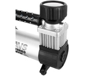 Автомобильный компрессор поршневого типа с электронным манометром, предназначен для подкачки шин автомобилей, мото и велотехники, а также спортивного инвентаря. Корпус и цилиндр компрессора выполнены из нержавеющей легированной стали. Усиленный магнит статора и ротор на подшипниках, уменьшают сопротивление и увеличивают мощность двигателя. Все детали прекрасно сбалансированы что позволяет снизить вибрацию. Электронный манометр с цифровым датчиком и возможностью выбора необходимого давления. Цифровой датчик отключит компрессор, когда давление достигнет установленного Вами значения. Максимальный ток потребления: 12 А Напряжение: 12 В Мощность: 150 W Максимальное давление: 10 Атм Производительность: 35 л/мин Рабочая температура: от -35°С до +80°С Длина кабеля: 3 м Масса: 1,38 кг Комплектация: • Компрессор • Набор насадок • Сумка для хранения