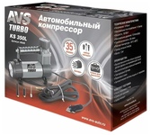 Автомобильный компрессор AVS "KS350L" предназначен для накачки воздухом шин легковых и коммерческих автомобилей. Рабочее напряжение компрессора - 12В. Высокая производительность делает возможным более широкое применение. Автомобильный компрессор может быть использован для накачки мячей, матрасов, проведения покрасочных работ. Максимальный ток потребления: 14 А Напряжение: 12 В Мощность: 150 W Максимальное давление: 10 Атм. Производительность: 35 л/мин Рабочая температура: от -35°С до +80°С Длина кабеля: 3 м Масса: 1.5 кг Комплектация: • Компрессор • Набор насадок • Сумка для хранения
