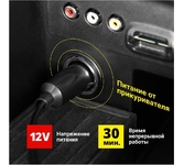 Максимальный ток потребления 15 A. Максимальное давление, атм.10.2. Напряжение питания 12 В. Производительность 35 л/мин. Длина шланга 0.75 м. Длина провода питания 3 м.