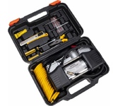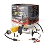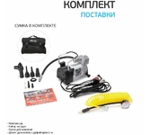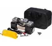 Компрессор автомобильный, металлический усиленный, двухпоршневой, 60 л/мин, с питанием от АКБ автомобиля, в кейсе с набором инструментов REXANT. В комплекте поставляются переходники для накачивания мячей, матрасов, резиновых лодок. В набор инструментов входят: две отвертки (шлицевая и крестовая), нож, плоскогубцы, шило, рашпиль, 5 жгутов. Особенности: двухпоршневой механизм; защита от перегрева; можно использовать для больших колес; поставляется в кейсе с набором инструментов. Напряжение - 12В Номинальная сила тока - 15-25А Подключение - от аккумулятора Максимальное давление - до 10Атм Время непрерывной работы - до 20 мин. Производительность - 60л/мин Длина провода - 3м Длина шланга - 3м Компрессор автомобильный - 1 шт. Пневмошланг - 1 шт. Упаковка - 1 шт. Пластиковый кейс для хранения - 1 шт. Паспорт изделия - 1 шт. Насадки - 3 шт. Набор инструментов - 2 отвертки (крестовая и шлицевая), нож, плоскогубцы, шило, рашпиль, 5 жгутов.