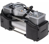 Компрессор автомобильный, металлический, усиленный, двухпоршневой, 60 л/мин, с питанием от АКБ автомобиля и функцией автостоп REXANT. Используется для накачки автомобильных шин легковых автомобилей, кроссоверов, внедорожников и малого коммерческого транспорта. Прибор оснащен мощным электрическим двигателем и повышенной системой безопасности. Устройство рассчитано на длительную эксплуатацию в суровых климатических условиях. В комплекте поставляются переходники для накачивания мячей, матрасов, резиновых лодок. Особенности: функция автостоп; встроенный LED фонарь для подсветки; двухпоршневой механизм; защита от перегрева; можно использовать для больших колес. Напряжение - 12В Номинальная сила тока - 15-25А Подключение - от аккумулятора Максимальное давление - до 10Атм Время непрерывной работы - до 20 мин. Производительность - 60л/мин Длина провода - 3м Длина шланга - 3м Компрессор автомобильный - 1 шт. Пневмошланг - 1 шт. Упаковка - 1 шт. Сумка для хранения - 1 шт. Паспорт изделия - 1 шт. Насадки - 3 шт.
