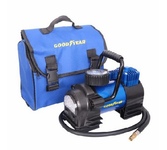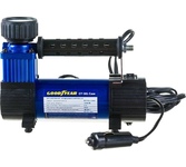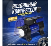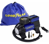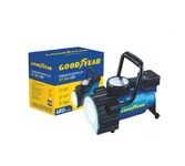 Производительность 35 л/мин, Давление до 7 атм, Для шин R13-R17, Питание 12 V, Защита флажковый предохранитель, Материал Сталь, Вес 1,9 кг, Воздушный компрессор Goodyear GY-35L LED 35 л/мин с фонарём, со съемной ручкой, сумка для хранения.