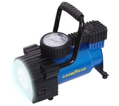 Производительность 30 л/мин, Давление до 7 атм, Для шин R13-R17, Питание 12 V, Защита флажковый предохранитель, Материал Сталь, Вес 1,8 кг, Воздушный компрессор Goodyear GY-30L LED 30 л/мин с фонарём, со съемной ручкой, сумка для хранения.