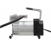 Автомобильный компрессор MTX C-65 58044 производительностью 65 л/мин работает от сети 12 В и предназначен для накачивания шин легковых автомобилей при помощи сжатого воздуха под давлением 10 бар. Также с его помощью можно подкачать резиновый матрац, мяч, лодку и другие предметы, для этого в комплект поставки включены адаптеры с разными наконечниками. Компрессор будет полезен автовладельцам, пригодится в поездке и на отдыхе. Преимущества Возможность подключения к аккумулятору автомобиля — в комплект поставки входит переходник со штекера для прикуривателя на клеммы. Безопасность — токопроводящие элементы надежно изолированы (класс защиты II) плавкий предохранитель на проводе питания при превышении номинального тока защищает мотор от поломки. Удобный контроль давления — манометр расположен на шланге.|Защита от превышения давления — спускной клапан-дефлятор на конце шланга позволяет сбрасывать излишки воздуха, контролируя это по манометру.|Свободное передвижение без перестановки компрессора — длина шланга составл