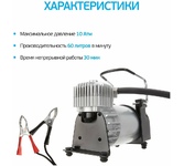 Автомобильный компрессор " Мощность: 180 Вт " Производительность: 40 л/мин " Давление: до 7 атм " Напряжение питания: 12V " Длина провода питания: 3 м " Длина воздушного шланга: 5 м " Защита: плавкий предохранитель " Материал: Сталь " Вес: 2,05 кг " Объем: 0,0062 куб.м " Металлическая поршневая группа " Увеличенная производительность " Высокоточный манометр " Универсальный автомобильный предохранитель в капсуле " ПВХ витой шланг 5м " Быстросъемный адаптер на вентиль колеса " Адаптер для подключения к АКБ " Время непрерывной работы 30 мин " Сумка для хранения и переноски компрессора " Переходники в комплекте Автомобильный предохранитель в капсуле защищает устройство от скачков напряжения, а также от превышения предельно-допустимых токов.