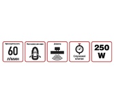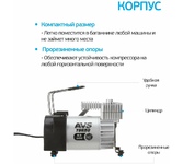 Мощность - 168 Вт, Производительность - 35 л/мин, Максимальное токопотребление - 14 А, Максимальное давление - 7 Атм, Длина провода питания: 3 м, Длина воздушного шланга: 1 м. Сумка и набор переходников в комплекте.