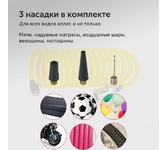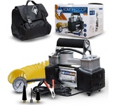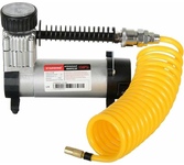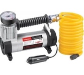Мощность – 180 Вт. Максимальная сила тока – 15 А. Максимальное давление – до 10 кг/см? (140PSI/10Bar) Производительность – до 85 л/мин. Шнур питания – 2,8 м. Воздушный шланг – 5м. Тканевая сумка для хранения и переноски Подключение к клеммам АКБ при помощи металлических зажимов Комплект насадок-переходников – 3 шт. Цвет- серебро Напряжение питания — 12В. Состав: металл, пластик