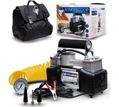 Компрессор автомобильный, металлический, усиленный, двухпоршневой, 60 л/мин, с питанием от АКБ автомобиля и функцией автостоп REXANT. Используется для накачки автомобильных шин легковых автомобилей, кроссоверов, внедорожников и малого коммерческого транспорта. Прибор оснащен мощным электрическим двигателем и повышенной системой безопасности. Устройство рассчитано на длительную эксплуатацию в суровых климатических условиях. В комплекте поставляются переходники для накачивания мячей, матрасов, резиновых лодок. Особенности: функция автостоп; встроенный LED фонарь для подсветки; двухпоршневой механизм; защита от перегрева; можно использовать для больших колес. Напряжение - 12В Номинальная сила тока - 15-25А Подключение - от аккумулятора Максимальное давление - до 10Атм Время непрерывной работы - до 20 мин. Производительность - 60л/мин Длина провода - 3м Длина шланга - 3м Компрессор автомобильный - 1 шт. Пневмошланг - 1 шт. Упаковка - 1 шт. Сумка для хранения - 1 шт. Паспорт изделия - 1 шт. Насадки - 3 шт.