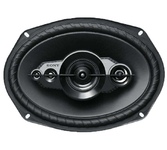 Четырехполосные коаксиальные 550 Вт пиковая мощность / 90 Вт номинальная мощность Частотная характеристика: 56 - 21 000 Гц Уровень звукового давления: 86 дБ/Вт м 15 x 23 cm (6" x 9") Carbon Mica Cone Woofer 6.6 см (2-5/8) полиэфиримидный конический среднечастотный динамик 2.5 см (1) полиэфиримидный купольный твитер 1.5 см (19/32) полиэфиримидный купольный твитер Ферритовый магнит (НЧ/СЧ) Гибридная кромка из резины и ткани Установочная глубина: 79 мм