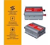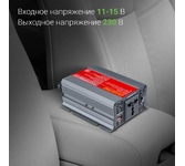 автомобильный преобразователь напряжения, входное напряжение: 11-15 В постоянного тока, выходное напряжение: 230 В переменного тока, выходная мощность БП: 400 Вт