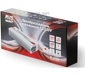 Автомобильный адаптер (инвертер) 12/220V позволяет владельцам автомобилей в дорожных условиях сделать возможной работу бытовой аудио-видео техники, компьютера, ноутбука и прочей оргтехники. Встроенная схема защиты предохраняет устройство от преждевременного выхода из строя в случаях низкого или высокого входного напряжения, неправильной полярности, короткого замыкания во входных цепях питания подключаемого устройства. Характеристики •Входное напряжение: 12В •Выходное напряжение: 220В •Выходная частота: 50Гц •Номинальная мощность: 1000Вт •Допустимая пиковая мощность: 2000Вт •Размеры: 21,3 х 14 х 6 см •Защита от короткого замыкания •Защита от перегрева Материал: металл, пластик Комплектация Преобразователь Провода Состав: Металл, пластик