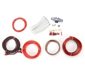 Cиловой кабель КС-МТ8 КРАСНЫЙ: 5 метров сечением 8 GA (8,36мм2). Cиловой кабель КС-МТ8 ЧЕРНЫЙ: 1 метр сечением 8 GA (8,36мм2). Держатель с компрессионными зажимами с предохранителем типа MiniANL на 40А: 1шт. Управляющий кабель сечением 18GA (0,82 мм2): 5 метров. Клемма кольцевая для силового кабеля сечением 8 GA (8,36мм2): 2 шт. Клемма U-образная для силового кабеля сечением 8 GA (8,36мм2): 2 шт.