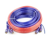 Cиловой кабель, длина 5м, 10AWG, в прозрачной красной изоляции. Толщина нити-0,20; толщина жилы 0,20*12. Наружный диаметр: 5,4ммЗаземляющий кабель, длина 1м, 10AWG, в прозрачной черной изоляцииТолщина нити-0,20; толщина жилы 0,20*12. Материал кабеля – омедненный алюминий. Диапазон рабочих температур: -40 ~ +65градНаружный диаметр: 5,4ммЧетырёхканальный межблочный кабель, длина 5м, в прозрачной синей изоляции с управляющим кабелем (ACV MKE5.4)Толщина нити-0,12; толщина жилы 0,12*30. Позолоченные RCA-коннекторы позволяют увеличить проводимость. Сигнало-передающий кабель защищен двойным экраном из поливинилхлоридной изоляции и алюминиевой фольги. Материал кабеля – омедненный алюминий. Улучшенное подавление помех, благодаря конструкции – витая пара. Держатель предохранителя ATC + предохранитель ATC 30АКруглые клеммы 10AWG – 2шт