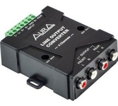 RCA адаптер Hi/Lo, 4 канала. Для преобразования сигнала высокого уровня с выхода штатных акустических систем в линейный выход низкого уровня для подключения внешнего усилителя. Автоматическое включение по входному сигналу. Регуляторы уровня.