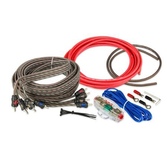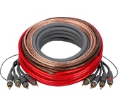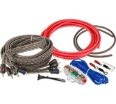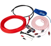 Комплект для подключения 4-х канального усилителя. Силовой кабель 10AWG (6мм2) красный — 5 метров. Силовой кабель 10AWG (6мм2) черный — 1 метр. Держатель MiniANL + предохранитель 40A. RCA-кабель: 5 метров, 4 канала, витая пара (RCA-0450). Провод «remote» 18AWG (0,75мм2) синий — 5 метров. Клемма кольцевая для силового кабеля сечением 10AWG (6мм2): 2 шт. Клемма U-образная для силового кабеля сечением 10AWG (6мм2): 2 шт. Шестигранник. Стяжки — 10шт. Упаковка: зиплок-пакет.