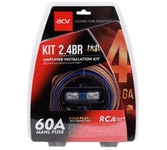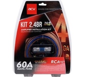 Комплект для подключения 4-х канального усилителя. Силовой кабель 4AWG (20мм2) красный — 5 метров. Силовой кабель 4AWG (20мм2) черный — 1 метр. Колба MiniANL + предохранитель 80A. RCA-кабель: 5 метров, 4 канала, витая пара (RCA-A154 MkII). Акустический кабель 16AWG (2?1,5мм2) — 15 метров. Провод «remote» 18AWG (0,75мм2) синий — 5 метров. Клемма кольцевая для силового кабеля сечением 4AWG (20мм2): 2 шт. Клемма U-образная для силового кабеля сечением 4AWG (20мм2): 2 шт. Шестигранник. Стяжки — 10шт. Упаковка: блистер.