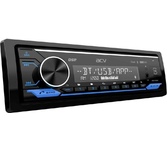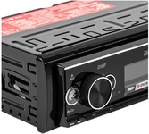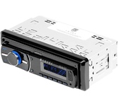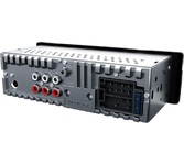 Головное устройство формата 1 DIN c Bluetooth. Управление радиоприемником с помощью приложения SmartBT iPlug. Переключение характеристик тембра. 1 пара RCA выходов. Напряжение питания, В: 14,4 (12) Установочные размеры, мм: 182 х 53 х 89 Диапазон принимаемых частот тюнера, МГц: 87,5 – 108 Максимальная выходная мощность (нагрузка 4 Ом), Вт: 4 х 25 Напряжение на линейном выходе (макс.), В: 5 Пределы регулировки тембра на частотах эквалайзера, дБ: ±7 Частотная характеристика аудиопроигрывателя, Гц, не уже: 20 - 20000 Цвет подсветки: синий