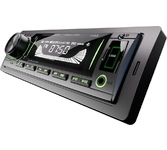 Автомобильный BT/USB ресивер Рабочее напряжение 12-24 Вольт Совместимое с iOS и Android приложение для управления всеми функциями ресивера Чтение звуковых форматов FLAC, MP3, WAV, APE, AAC Встроенный Bluetooth-модуль (A2DP) Максимальная выходная мощность: 36Вт Номинальная выходная мощность (при КНИ менее 1%): 10Вт Вход AUX (3,5 мм джек) Линейный выход RCA (1 пара) Предустановки эквалайзера (классическая/ популярная музыка, рок) Цифровой радио-тюнер Память на 18 FM радиостанций USB-порт ID3 тэги (английский язык) Несъемная панель Зеленая подсветка Жидкокристаллический (VA) дисплей ISO разъем (ISO коннектор в комплекте)