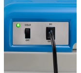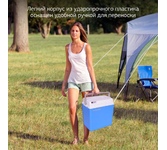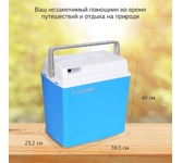 Объем камеры 23 л. Потребляемая мощность 48 Вт. Функция охлаждения. Охлаждение до5 °. Питание от бортовой сети автомобиля 12В. Материал корпуса пластик. Цвет основной синий. Ручка для переноски.