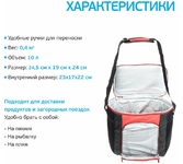 Описание В эпоху высоких технологий перед многими людьми по-прежнему стоит проблема - как в поездке длительное время сохранить продукты свежими. Особенно остро данная проблема стоит перед любителями дальних путешествий. На самом деле данную проблему очень просто решить с помощью термосумки. Такая сумка в течение длительного времени способна сохранять низкую температуру, позволяя продуктам оставаться свежими. Характеристики •Объем: 20 л •Размер: 31,5*22*33 см •Внутренний размер: 31*20.5*29 см •Вес: 0,65 кг Материал: полиэстер, полиуретан