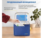 Термосумка AVS выполнена из полиэстера. Имеет основное отделение на молнии, передний карман на молнии и два боковых сетчатых кармана. Благодаря специальному изоляционному слою, сумка-холодильник позволяет сохранять ваши продукты свежими, а напитки холодными даже в жару. Рекомендуется использовать с аккумуляторами холода AVS. Оснащена регулируемым плечевым ремнем. Обеспечивает термоизоляцию за счет высококачественной полиэтиленовой пены. Характеристики •Объем: 10 л •Размер: 24,5*19*24 см •Внутренний размер: 23*17*22 см •Вес: 0,4 кг Материал: полиэстер, полиуретан, PEVA Состав: Полиэстер, полиуретан, PEVA