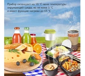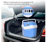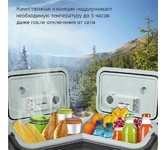 Объем: 22 л Размеры изделия (ШхГхВ): 35,5х24х49,5 см Вес: 3,3 кг Охлаждение: на 15-20 ? ниже температуры окружающей среды (25 ?) Нагрев: до 55-65 ? Питание: DC 12 В или AC 220-240 В ~ 50 Гц Потребляемая мощность: в режиме охлаждения 45 Вт, в режиме нагрева 40 Вт. Хладоэлемент (аккумулятор холода) - 2 шт Длина сетевого шнура: 1,8 м