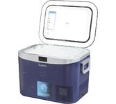 Мобильный холодильник компрессорный • цвет Темно-синий • сенсорный LED дисплей • температура в режиме морозильника от -18 до 0 °C • температура в режиме холодильника от 0 до +20 °C • работа от сети/прикуривателя автомобиля/аккумулятора • автоматическая защита разряда аккумулятора машины • крышка на магните • габариты 33,5х46,5х32см • объем 18л