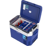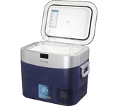 Мобильный холодильник компрессорный • цвет Темно-синий • сенсорный LED дисплей • температура в режиме морозильника от -18 до 0 °C • температура в режиме холодильника от 0 до +20 °C • работа от сети/прикуривателя автомобиля/аккумулятора • автоматическая защита разряда аккумулятора машины • крышка на магните • габариты 38,5х46,5х32см • объем 22л
