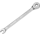 Комбинированный гаечный ключ из хромованадиевой стали с 72-зубцовым храповым механизмом в накидной части. Благодаря наличию трещотки, ключ ускоряет отворачивание и заворачивание крепежа как в обычных условиях, так и в условиях ограниченного пространства. Сатиновое покрытие трещоточного ключа обеспечивает ему дополнительную антикоррозионную стойкость. Размер ключа – 12 мм. Материал – хромованадиевая сталь (CrV). Метод изготовления - холодная штамповка. Твердость – 43-49 HRC. Соответствует стандарту DIN 3113. Сатиновое покрытие.
