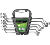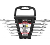 Рожковый гаечный ключ, он же гаечный с открытым зевом – это рукоятка с двумя рабочими краями, рабочая часть которых – U-образная подкова. Незаменимый универсальный инструмент для обслуживания крепежа, доступного лишь, с одной стороны. Крепеж надежно фиксируется в вилке и с помощью рычага происходит давление на откручивание или затягивание резьбового соединения. Инструменты изготавливаются из хромованадиевой стали по стандарту DIN 3110 и соответствуют требованиям ГОСТ 2838-80 и ГОСТ 10112-2001 по размерному ряду. Для вашего удобства мы собрали наиболее используемые размеры ключей в наборы. Прочный пластиковый держатель сделает хранение инструмента удобным и компактным. Размеры ключей: 8х10, 10х12, 12х13, 14х15, 13х17, 17х19 мм Покрытие: сатиновое ГОСТ 2838-80, ГОСТ 10112-2001 DIN-3118 Прочность: 47-52 HRC