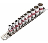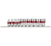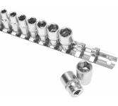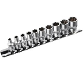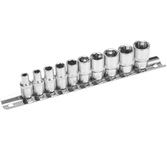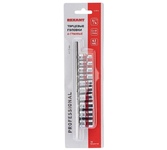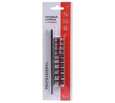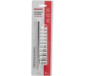 Набор головок REXANT используется для монтажа и демонтажа резьбовых соединений. Инструменты изготовлены из хромованадиевой износостойкой и долговечной стали с хромоникелевым покрытием. Твердость материала рабочей части головок – 42 HRС. В набор входят 6-гранные торцевые головки на планке под квадрат 1/4" следующих размеров: 4, 5, 6, 7, 8, 9, 10, 11, 12 и 13 мм. Ярко-красная полоска предназначена для удобного поиска. Технические характеристики: Головка торцевая, 4 мм: 1 шт. Головка торцевая, 5 мм: 1 шт. Головка торцевая, 6 мм: 1 шт. Головка торцевая, 7 мм: 1 шт. Головка торцевая, 8 мм: 1 шт. Головка торцевая, 9 мм: 1 шт. Головка торцевая, 10 мм: 1 шт. Головка торцевая, 11 мм: 1 шт. Головка торцевая, 12 мм: 1 шт. Головка торцевая, 13 мм: 1 шт. Металлическая плашка-держатель: 1 шт. Количество предметов: 10 Количество граней: 6 Размер присоединительного квадрата: 1/4 дюйм Минимальный размер головки: 4 мм Максимальный размер головки: 19 мм Марка стали: CrV Назначение: для автомобиля Особенности: на держателе