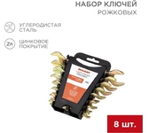 Набор рожковых гаечных ключей REXANT применяется для монтажа и демонтажа резьбовых соединений: болтов, гаек, муфт и т. д. Ключи изготовлены из углеродистой стали, благодаря чему имеют большую прочность и выдерживают значительное давление. Инструменты имеют желтое оцинкованное покрытие, благодаря чему обладают высоким антикоррозионными свойствами. Рожковые ключи просты в обращении и обеспечивают доступ к любому крепежу. Набор поставляется в пластиковом футляре для удобного хранения и транспортировки. Размеры: 6х7, 8х9, 10х11, 12х13, 14х15, 16х17, 18х19, 20х22 мм