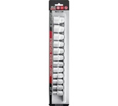 Набор укомплектован стальной рейкой с отдельными посадочными местами для каждой головки. Применяются в сфере ремонта и обслуживания автомобилей и других работ с резьбовым крепежом. Головка торцевая 6-гранная 1/2"DR: 10 мм, 12мм, 13 мм, 14 мм, 15 мм, 16 мм, 17 мм, 18 мм, 19 мм, 21 мм, 22 мм, 24 мм Закалены до твердости 45-48HRC Материал - хромованадиевая сталь Покрытие: сатиновое