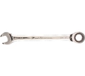Комбинированный трещоточный ключ Matrix 14815 из стали CrV, с покрытием «зеркальный хром», размером 24 мм, позволяет быстро откручивать и закручивать болты и гайки. Рожковую часть удобно использовать там, где нет возможности полного охвата детали, а трещоточный механизм повышает удобство работы в труднодоступных местах. Преимущества Прочность — ключ из высококачественной стали 40CrV с храповым механизмом твердостью 58 HRC легко выдерживает интенсивные нагрузки. Коррозионная стойкость — зеркальное хромоникелевое покрытие защищает инструмент от воздействия влаги. Аккуратная работа — накидная часть с 12-гранным профилем полностью охватывает головку крепежа, что снижает риск деформации ее граней.