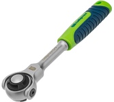 Ключ-трещотка Сибртех 14008 с двухкомпонентной рукояткой и присоединительным квадратом 3/8" используется с торцевыми головками, имеющими посадочное гнездо соответствующего размера. Предназначен для закручивания и раскручивания резьбовых соединений. Храповой механизм с 72 зубцами обеспечивает плавное вращение. Ключ применяется для ремонта автомобилей, техники и оборудования, а также пригодится дома или на даче. Преимущества Прочность и долговечность — инструмент изготовлен из высококачественной хромованадиевой стали. Удобная работа в ограниченном пространстве — шаг трещотки составляет всего 5°. Быстрый переход от монтажа к демонтажу — направление вращения меняется при помощи переключателя. Простая установка и замена насадки — механизм быстрого сброса позволяет моментально снимать торцевую головку. Надежная фиксация оснастки — металлический шарик-держатель не допускает выпадение торцевых головок, адаптеров и удлинителей. Комфортная эксплуатация — эргономичная двухкомпонентная рукоятка удобно ложится в руку.