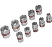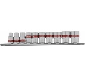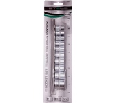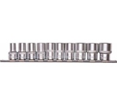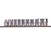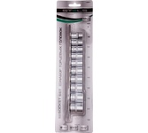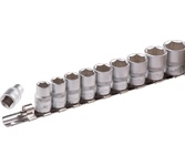 Набор торцевых головок Matrix 13558 из стали CrV, с посадочным гнездом 3/8"" и шестигранным профилем, включает 10 насадок диаметром 8-19 мм, предназначенных для работы с резьбовыми соединениями. Пригодится для проведения бытового ремонта, будет полезен сантехнику, слесарю, авторемонтнику.ПреимуществаУниверсальность — в комплект входят насадки самых распространенных размеров.Прочность — торцевые головки из хромованадиевой стали выдерживают повышенные нагрузки.Коррозионная стойкость — на головки нанесено полированное хромоникелевое покрытие.Быстрый поиск нужной насадки — каждая торцевая головка маркирована ярко-красной полоской и имеет обозначение типоразмера.Удобное хранение — для головок предусмотрена плашка-держатель, поэтому они всегда будут под рукой и не потеряются.