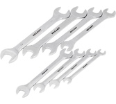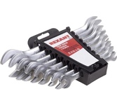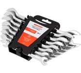 Набор рожковых гаечных ключей REXANT предназначен для монтажа и демонтажа резьбовых соединений: болтов, гаек, муфт и т. д. Хромованадиевый сплав, из которого изготовлены ключи, обладает такими свойствами, как прочность, жесткость, устойчивость к износу. Инструменты обладают высокой устойчивостью к коррозии благодаря хромовому покрытию. Просты в обращении и обеспечивают доступ к любому крепежу. Размеры: 8х10, 10х12, 12х13, 14х15, 13х17, 17х19, 19х22, 22х24 мм. Ключи поставляются в пластиковом футляре для удобного хранения и транспортировки.