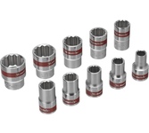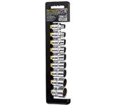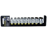 Применяются в сфере ремонта, обслуживания автомобилей и других работ с резьбовым крепежом. Состав набора: Головка торцевая 6-гранная 1/4"DR - 4, 4.4, 5, 5.5, 6,7,8,9,10,11,12,13,14 мм - 13 шт Головка торцевая со вставкой TORX 1/4"DR - T10,T15,T20,T25,T30 Головка торцевая со вставкой Phillips 1/4"DR - PH1, PH2 Головка торцевая со вставкой Slotted 1/4"DR - 5.5, 7 мм Головка торцевая с шестигранной вставкой 1/4"DR - 3,4,5,6 мм Трещоточная рукоятка 1/4"DR с пластиковой ручкой, 72 зубца -1шт Удлинитель 1/4"DR 100 мм -1шт Материал - хромованадиевая сталь Твердость - 45-48 HRC Покрытие - сатиновое