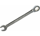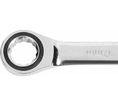 Комбинированный трещоточный ключ Matrix 14817 из стали CrV, с покрытием «зеркальный хром», размером 30 мм, позволяет быстро откручивать и закручивать болты и гайки. Рожковую часть удобно использовать там, где нет возможности полного охвата детали, а трещоточный механизм повышает удобство работы в труднодоступных местах. Преимущества Прочность — ключ из высококачественной стали 40CrV с храповым механизмом твердостью 58 HRC легко выдерживает интенсивные нагрузки. Коррозионная стойкость — зеркальное хромоникелевое покрытие защищает инструмент от воздействия влаги. Аккуратная работа — накидная часть с 12-гранным профилем полностью охватывает головку крепежа, что снижает риск деформации ее граней.