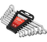 Набор из 8 накидных ключей Matrix 15332 из стали CR-V, с покрытием из полированного хрома, предназначен для монтажа и демонтажа крепежных элементов размером 6-22 мм. Накидные рабочие части с круглым профилем полностью охватывают головку крепежа и легко справляются даже с закисшими болтами и гайками. Благодаря изогнутой форме ключи удобны для работы в труднодоступных местах. Инструменты подходят для эксплуатации в бытовых условиях, автосервисе и частной мастерской. Преимущества Высокий ресурс — инструменты изготовлены из прочной хромованадиевой стали, твердость рабочих частей составляет 44 HRC. Коррозионная стойкость — полированное хромоникелевое покрытие защищает инструменты от воздействия влаги. Универсальность — в набор входит 8 двусторонних ключей для работы с крепежом разного размера. Удобный держатель — ключи не выпадут и не потеряются во время хранения и транспортировки.